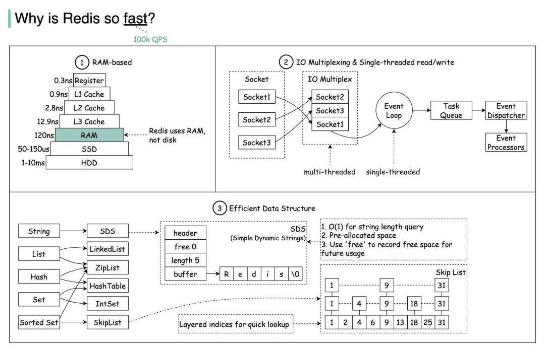 下面这张图片总结的挺不错的,分享一下,出自 Why is Redis so fast?[5] 。