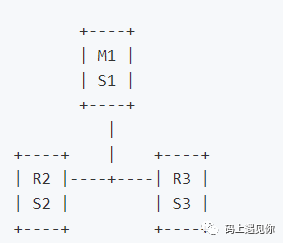 如果此时仅仅是 M1 进程宕机了,哨兵 s1 正常运行,那么故障转移是 OK 的。但是如果是整个 M1 和 S1 运行的机器宕机了,那么哨兵只有 1 个,此时就没有 majority 来允许执行故障转移,虽然另外一台机器上还有一个 R1,但是故障转移不会执行。经典的 3 节点哨兵集群是这样的: