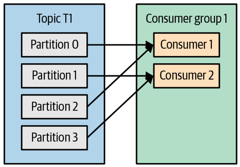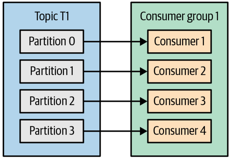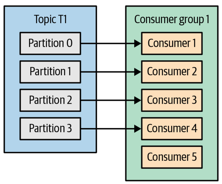 我们甚至可以给每个不同的partition都安排一个consumer,如下所示: