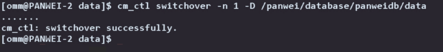 cm_ctl switchover -n 1 -D /panwei/database/panweidb/data