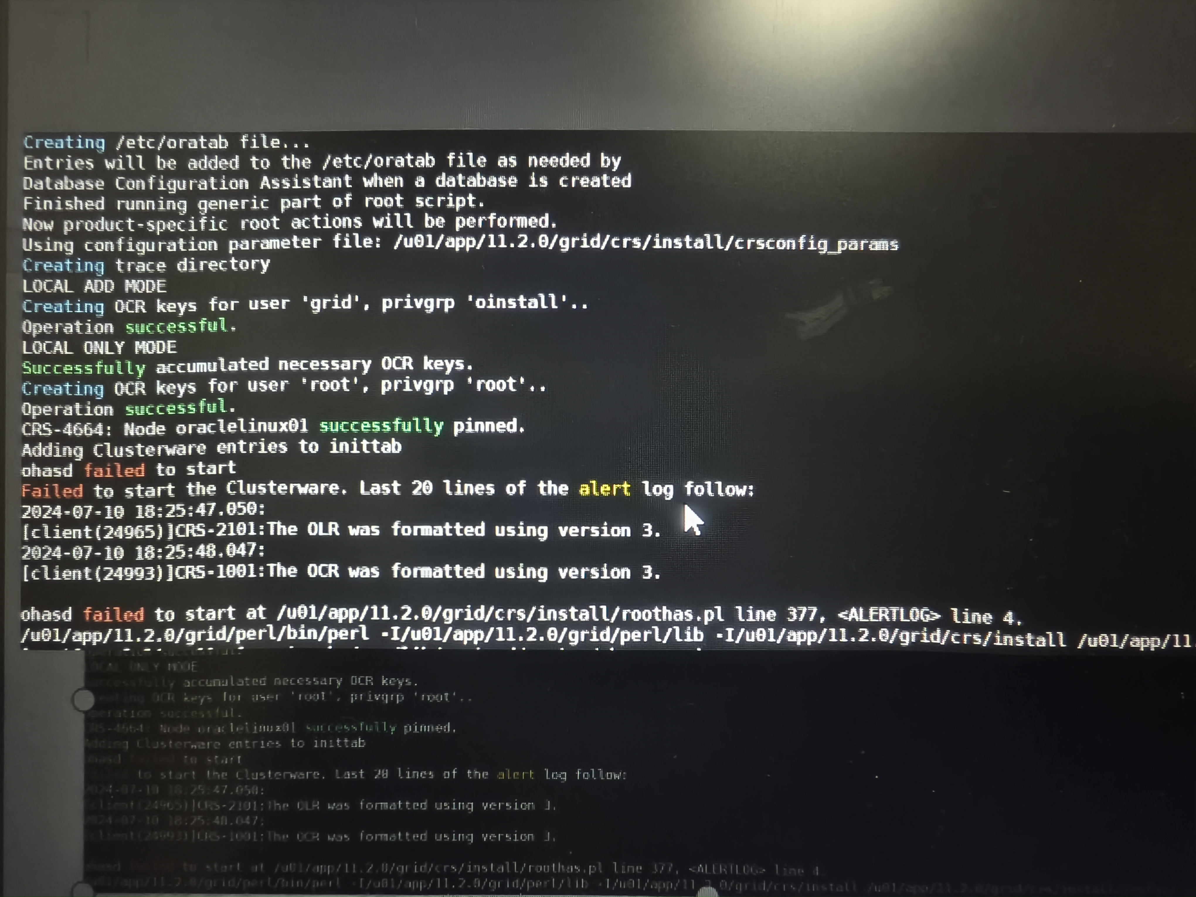下面可以重新运行脚本root.sh 不会再报ohasd failed to start错误了。