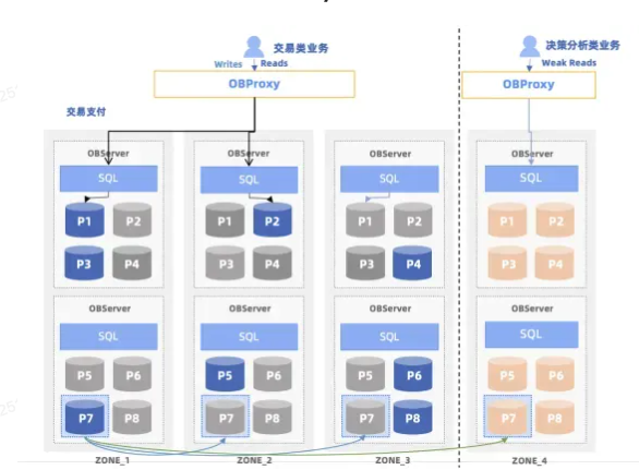 OBProxy将交易类请求只发往ZONE_1、ZONE_2、ZONE_3的对应Leader副本