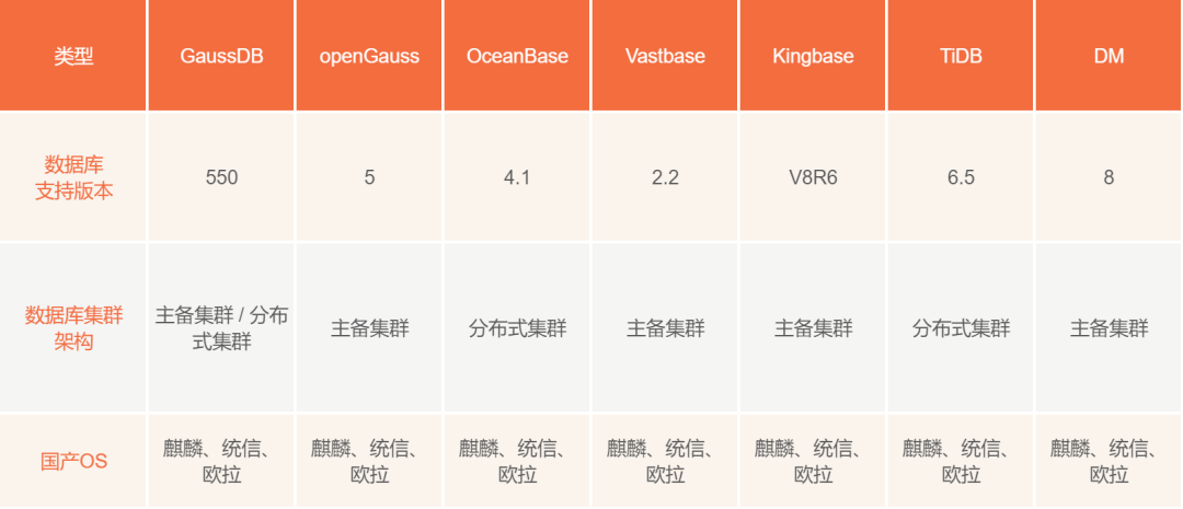 支持国产信创软硬件,已完成主流信创产品兼容,如国产操作系统(欧拉、统信、麒麟),国产服务器(鲲鹏、海光、飞腾),国产数据库GaussDB、OceanBase、海量、人大金仓等。