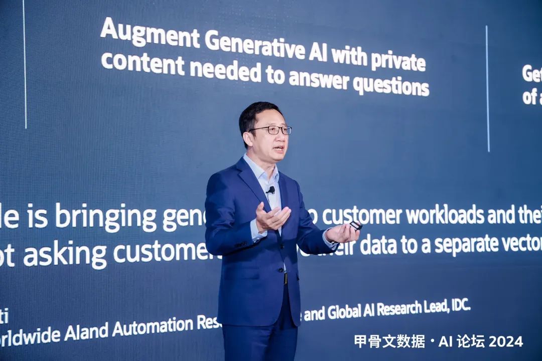 在此背景下,在日前举办的甲骨文数据·AI 论坛2024上,甲骨文公司不仅全面介绍了自身端到端的生成式 AI “全栈赋能”优势,并生动演示了其融合向量数据库在 AI 领域的多种应用,希望帮助企业在行业领域中更好地利用 AI 技术结合企业自身数据,构建专属 AI 和融合数据平台,打通企业 AI 应用落地的“最后一公里”,赋能企业发展新质生产力,助推中国经济高质量发展。
