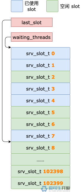 ,last_slot 指向它后面的那个 slot,也就是 srv_slot_t 8