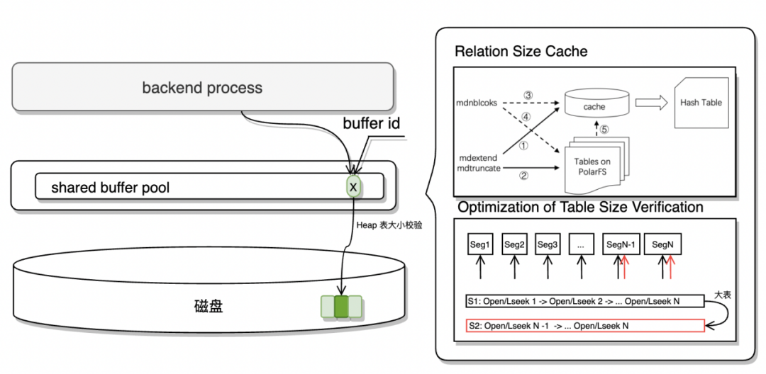 从数据库的流量:下图展示了从数据库每天的查询流量情况。观察可见,查询分析业务每日的事务提交量平均仅为数十次,但普遍处理速度较慢,这主要归因于大多数事务属于分析报告类型的业务。这映射出AP数据库的一个显著特征,即倾向于执行大规模查询而事务流量相对较低。面对大数据时代下对数据库系统提出的严峻挑战,尤其是在处理超大规模数据表时,PolarDB针对4TB级别大表引发的性能瓶颈,采取了一系列创新性策略,不仅从底层架构上进行了优化,还考虑了实际运行环境下的效率与稳定性问题。以下是对PolarDB所实施优化措施的深入解析与扩展讨论。▶︎ 3.2.1 PolarDB-PG的文件校验流程简化在传统的数据库管理系统中,确保数据完整性通常要求在每次数据写入前进行繁琐的文件校验过程,这包括定位写入位置、验证文件状态等步骤,尤其是对于拥有数千个分段文件的大表而言,这一过程成为了显著的性能拖累。PolarDB-PG通过智能算法优化,实现了在保障数据完整性的前提下,精简了这一流程,具体体现在:▶︎ 3.2.2 表大小缓存机制的引入