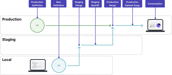 暂存环境暂存环境使我们能够在用户频繁更新定义的情况下,同时保持关键业务指标的一致性和可用性。这对于公司内部许多大规模数据迁移项目的成功至关重要,并且它帮助我们专注于数据质量,从而改进了我们的数据仓库。