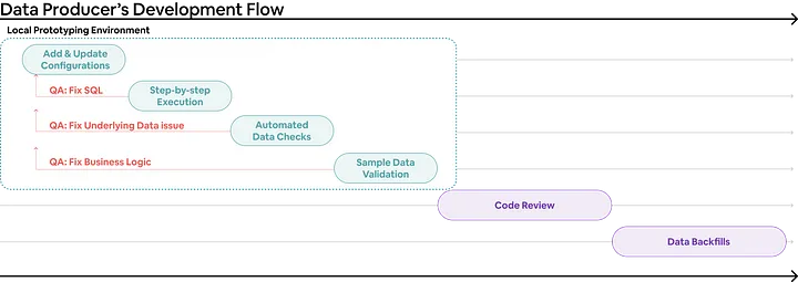 为了实现可验证这一点,Airbnb创建了一个引导式的原型工具,它从生产环境读取数据,写入到一个隔离的沙盒。利用Minerva任务流执行逻辑,在用户本地修改之上快速生成样本数据。这样用户能够利用新数据和已有数据检查质量,同时也可以提供样本数据来验证输出是否符合预期。
