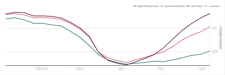 翠花从历史数据了解到,Airbnb对城市与非城市目的地的需求大约是两倍。在疫情期间,翠花假设旅行者会避开大城市,选择人群不太密集的目的地。