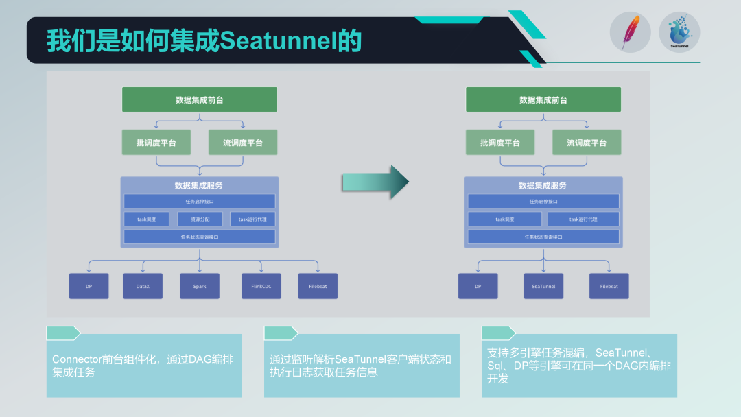在集成 SeaTunnel 过程中,我们主要关注以下几点: