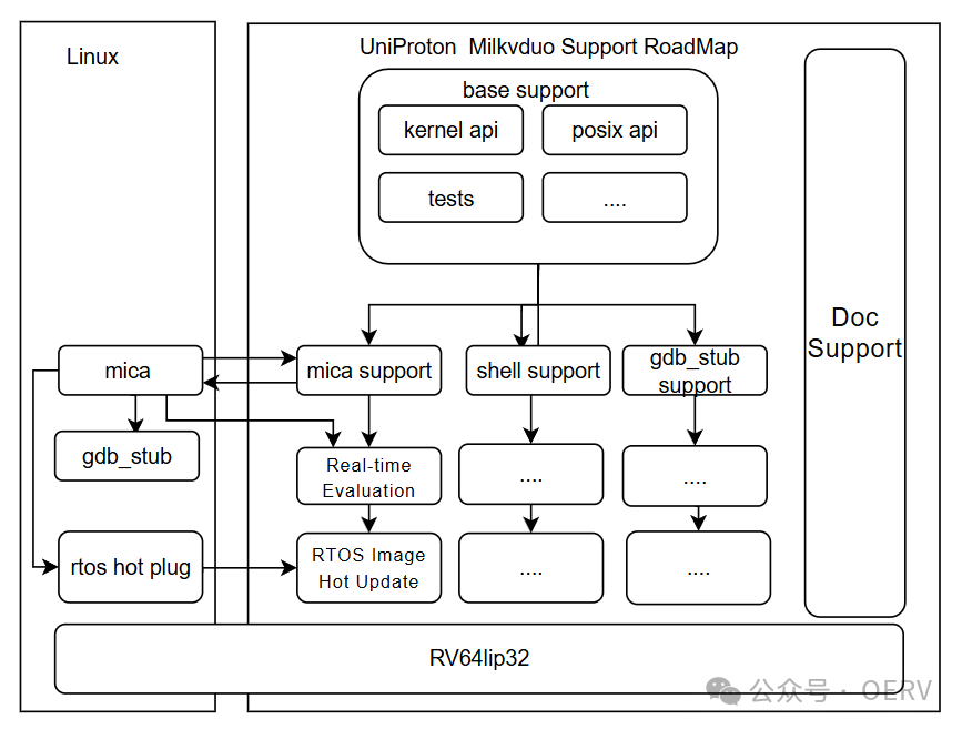 对于 Milk-V Duo 的小核,工作重点包括开发与优化 UniProton 的相关文档,支持 MICA 部署,评估与 UniProton 混合部署 RTOS 时的实时性能,以及提供 shell 和 gdb_stub 支持。此外,还将优化 UniProton 单独部署时的各个组件。