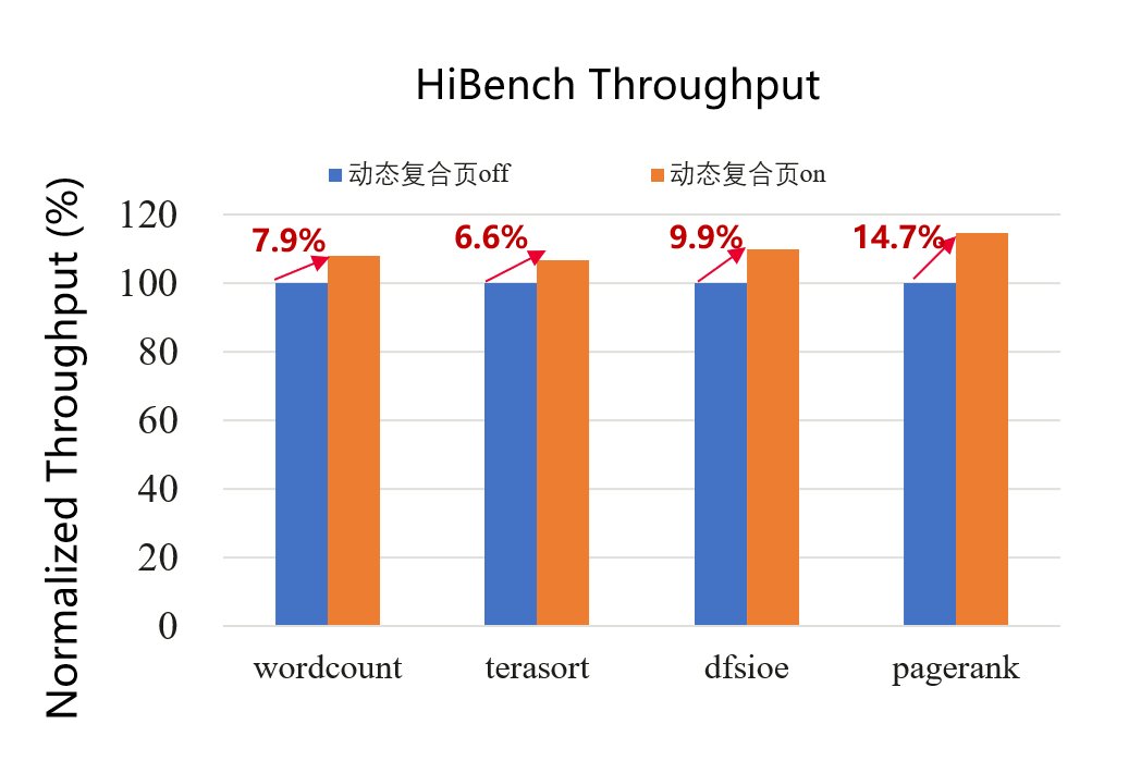 打开动态复合页后,测试hibench(Spark)结果各项指标平均提升10%