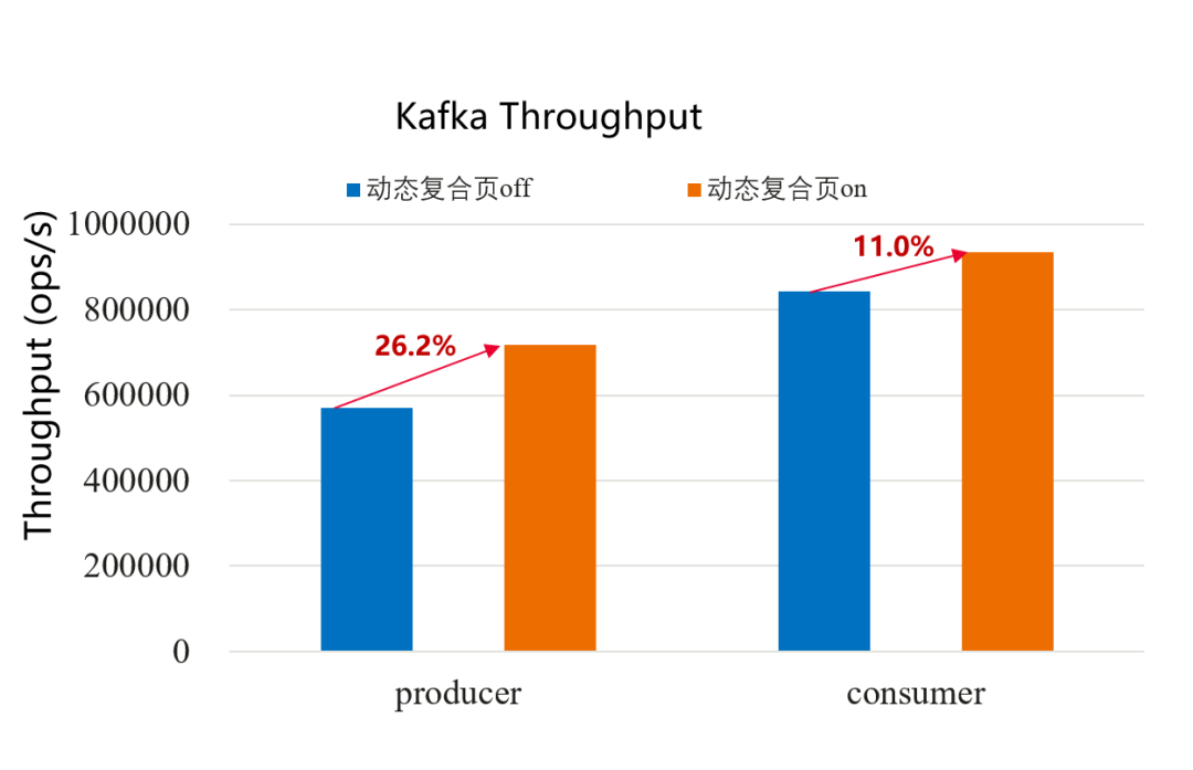 打开动态复合页后,测试kafka benchmark结果:producer带宽提升26%,consumer带宽提升11%