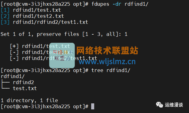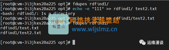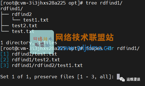 我又在rdfind1目录下建了一个同样内容的文件,再次执行fdupes rdfind1/