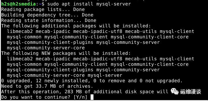 接下来,就像使用 APT 包管理器安装任何常规包一样,也安装 MYSQL 数据库服务器。