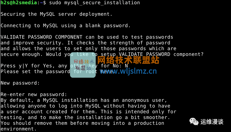 按照基于文本的向导设置 root 密码(如果需要)、删除演示数据库、禁止远程 root 登录并删除匿名用户。
