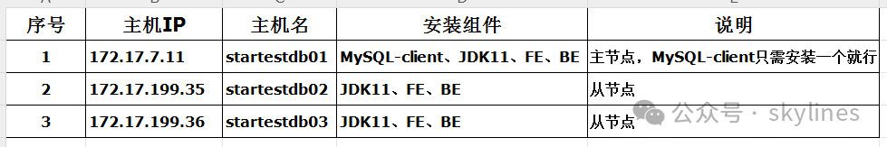 这是我第一次安装部署Starrocks三节点分布式集群数据库,采用存算一体的架构,花了大半天时间,部署过程中也不到不少问题,包括主机环境、参数配置、网络和实施操作步骤先后等方面引发的问题。