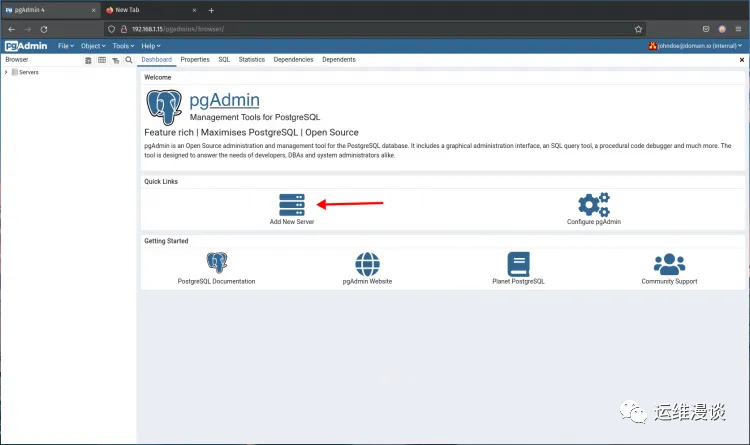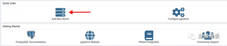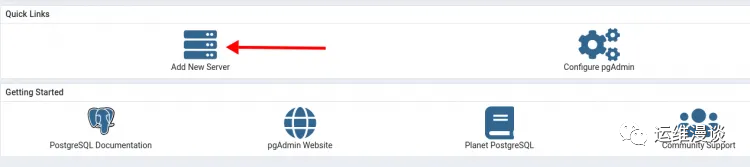 在 pgAdmin 仪表板中,单击“添加新服务器”图标。