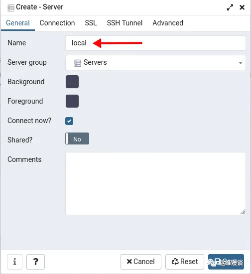 对于本指南,我们将提供一个新的连接名称为“local”。