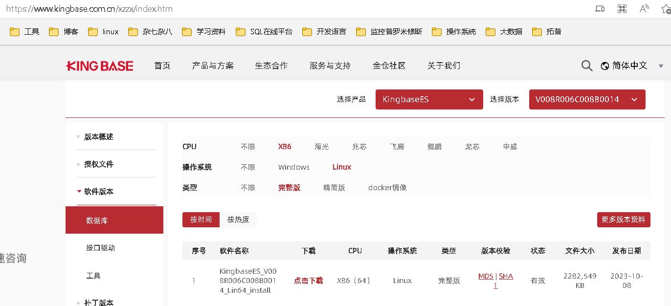 数据库软件官方下载地址:https://www.kingbase.com.cn/xzzx/index.htm