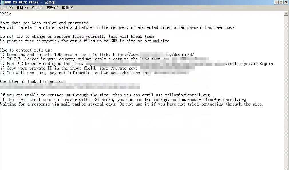 2. 勒索信息出现:在计算机桌面或文件夹内,会生成一个特殊的文本文件,详细说明勒索信息和攻击者的联系方式。
