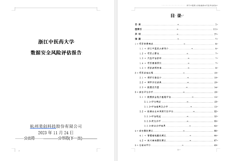 结合法律法规及教育行业的相关规定,美创数据安全咨询服务团队对浙中医大数据安全现状进行综合摸底,开展数据安全风险评估和分析,包括合规安全、组织建设、制度建设、技术工具等模块,并完成输出以下内容: