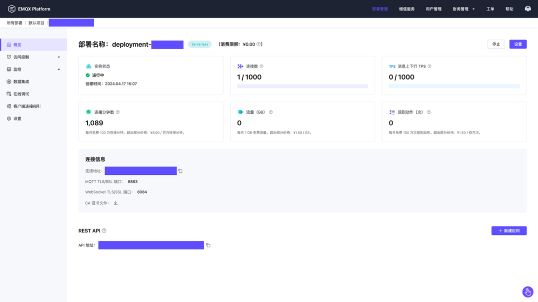 mqtt_client节点修改 MQTT 服务器地址、端口、CA 证书路径以及连接时使用的用户名密码「EMQX Serverless 的概览页面提供了连接地址与端口信息,以及 CA 证书的下载链接」。