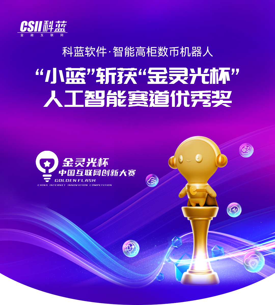 7月11日于北京圆满落幕的第二十三届中国互联网大会上,科蓝软件凭借其创新力作——智能高柜数币机器人“小蓝”,在首届“金灵光杯”中国互联网创新大赛中荣获人工智能赛道的优秀奖。大会作为互联网行业最具影响力的盛会之一,它不仅汇聚了众多互联网行业的精英领袖,还见证了多项前沿科技与创新应用的集中展示。在大会的闭幕式上,中国互联网协会隆重揭晓了首届“金灵光杯”中国互联网创新大赛的获奖名单,旨在表彰那些为推动中国互联网产业发展做出突出贡献的优秀项目和个人。
