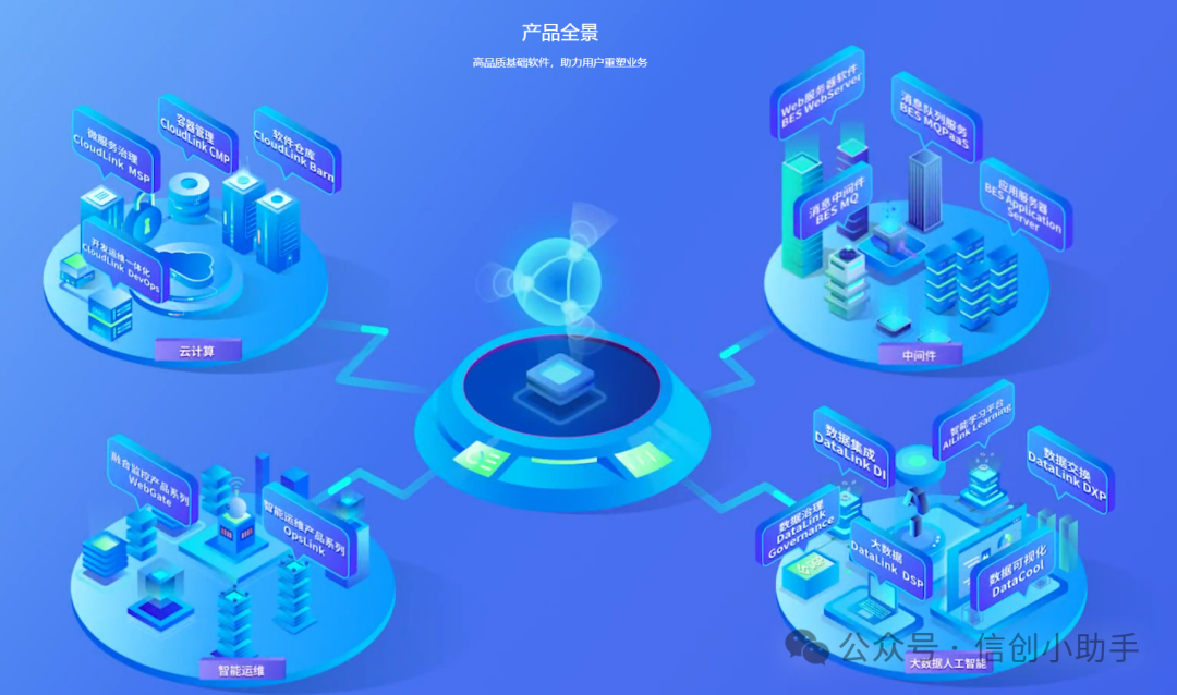 宝兰德产品线已经覆盖到了基础软件领域的中间件、容器PaaS平台、智能运维和大数据等多个方向,包括应用服务器BES Application Server、交易中间件BES VBroker、消息中间件BES MQ、应用性能管理平台WebGate、智能运维管理平台CloudLink OPS、容器云PaaS平台CloudLink CMP、数据交换DataLink DXP、数据集成DataLink DI和数据可视化DataCool等在内的多款软件产品。