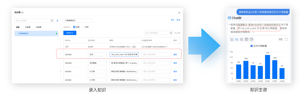 在面对行业黑话时,腾讯云 ChatBI 支持录入行业知识,让大模型进一步学习,成为领域专家,提升回答准确率。