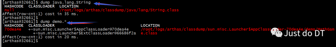 把demo包下所有的类的字节码文件保存到~/logs/arthas/classdump/目录下