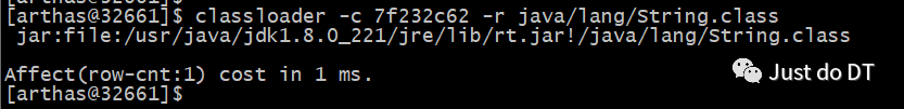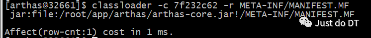 使用ClassLoader去查找指定资源resource所在的位置classloader -c 7f232c62 -r META-INF/MANIFEST.MF