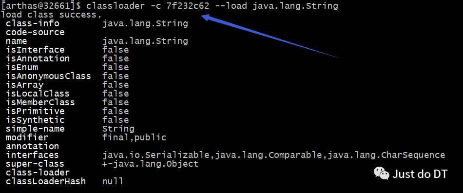 使用ClassLoader去加载类classloader -c 7f232c62 --load java.lang.String