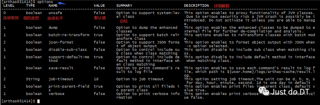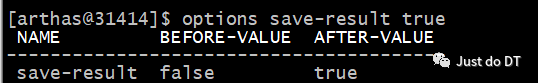 | save-result | false | 是否打开执行结果存日志功能,打开之后所有命令的运行结果都将保存到~/logs/arthas-cache/result.log中 |