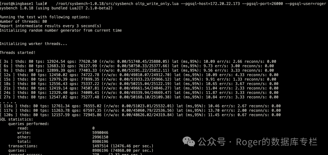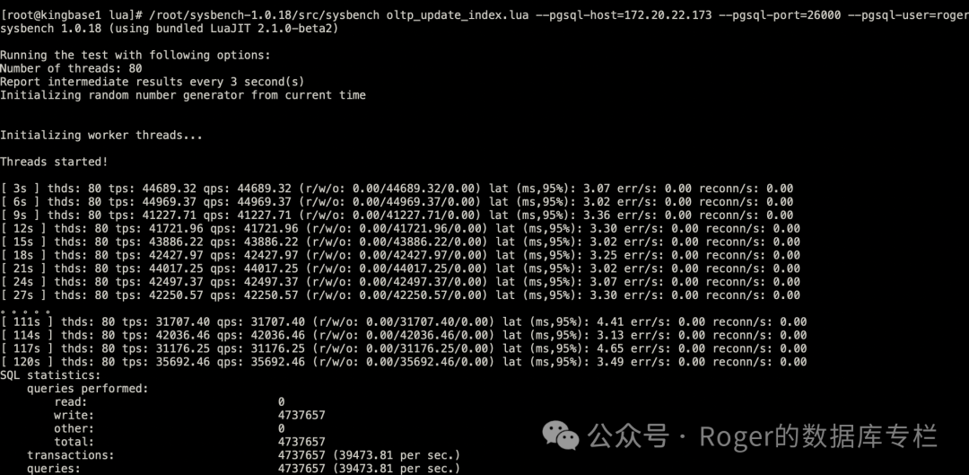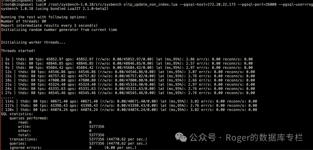 上周5同事转了一个帖子给我,说某公众号写了一篇MogDB vs KingBase的文章测评。该博主使用sysbench测了一些场景,其中大部分场景Mogdb相比KingBase而言表现都要差一些,只有一个场景比kingbase高很多。