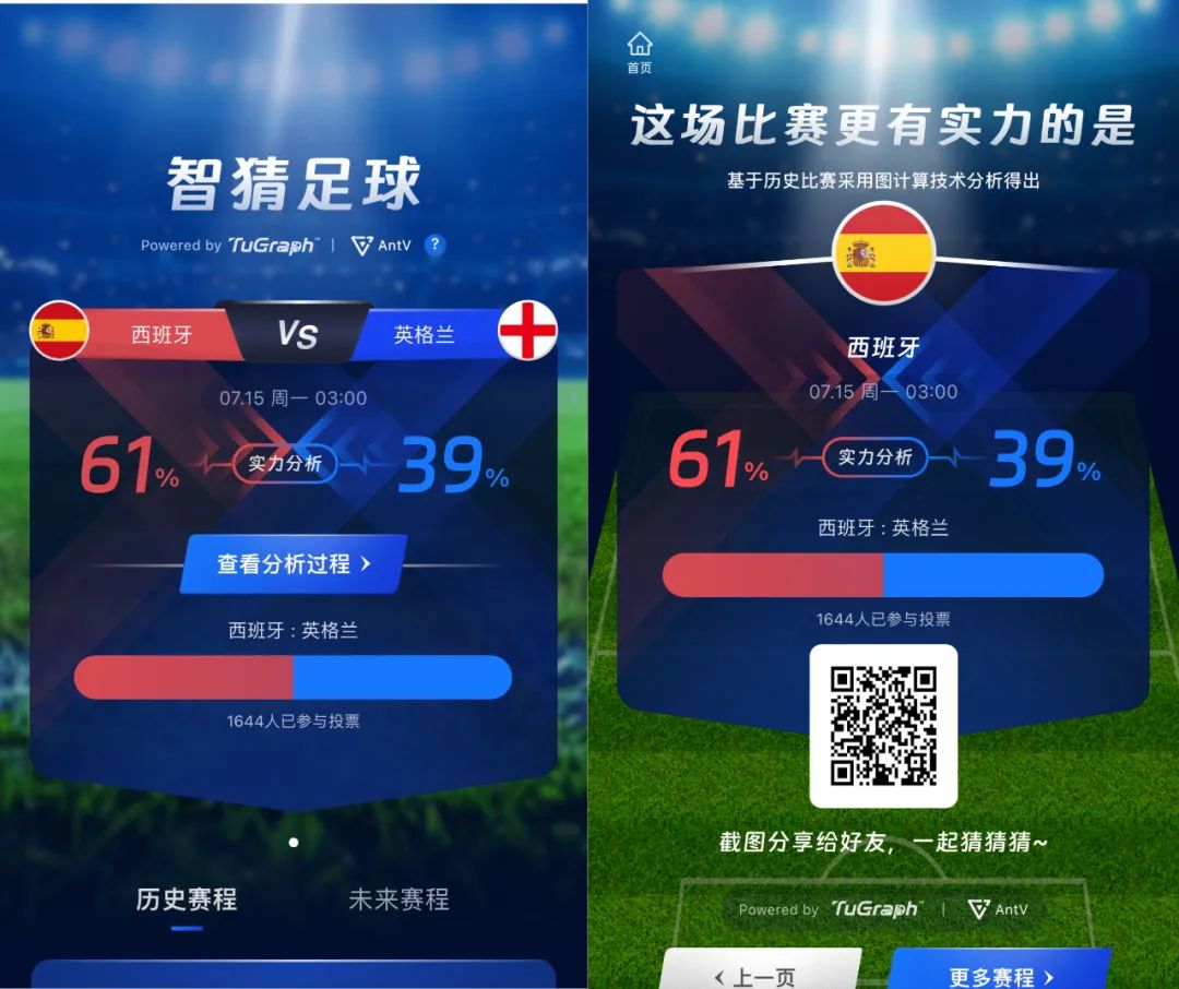 7月15日凌晨,2024年欧洲杯完美落幕。在柏林奥林匹克体育场,西班牙队以 2:1 战胜英格兰队,以7场连胜的成绩成为本届欧洲杯冠军。TuGraph 团队开发的“智猜足球”小工具(https://football.tugraph.tech)也准确预测了这场胜利✌️