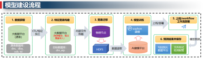 项目采用了星环科技的智能分析工具Sophon,建立人工智能平台。项目的实施流程如下图所示。