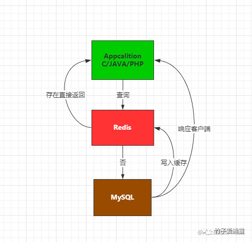 造成巨大的访问压力,严重的情况下甚至会由于流量过大,直接将数据库打到宕机,因此为了解决这系列问题,通常都会在应用程序和数据库之间架设一个缓存,例如最常用的Redis