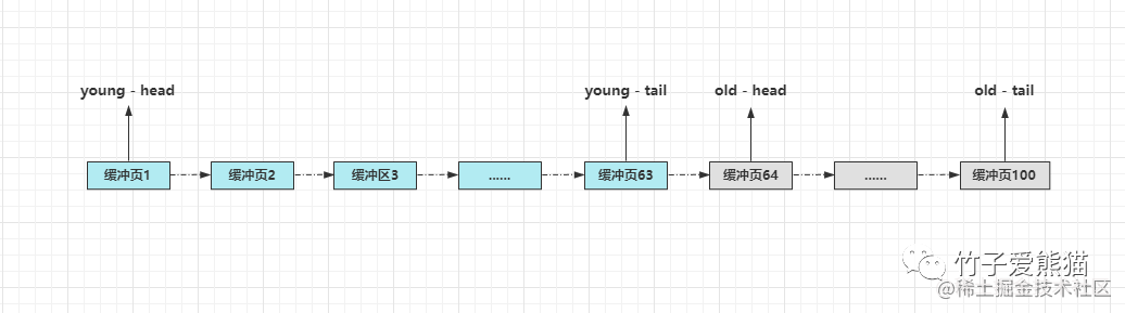 区的头部。如果预读的这页在后续一直没有被访问,就会从old