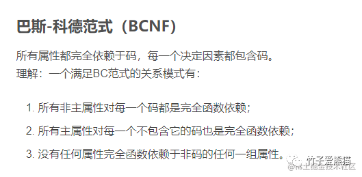 • 巴斯范式:主键字段独立性,联合主键字段之间不能存在依赖性。