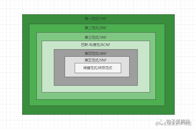 除开聊到的六大范式外,还有一种范式名为域键范式,也被称之为终极范式,但目前也仅有学术机构在研究,在生产环境中实际的用途也不大,诸位有兴趣可以自己看看,最后再上一个各范式之间的递进关系图: