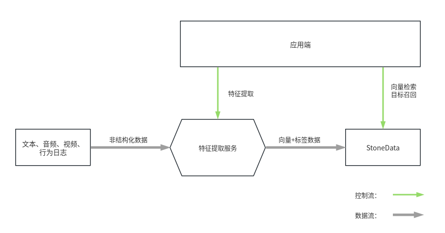 通过 StoneData 产品搭建向量分析的典型架构如下: