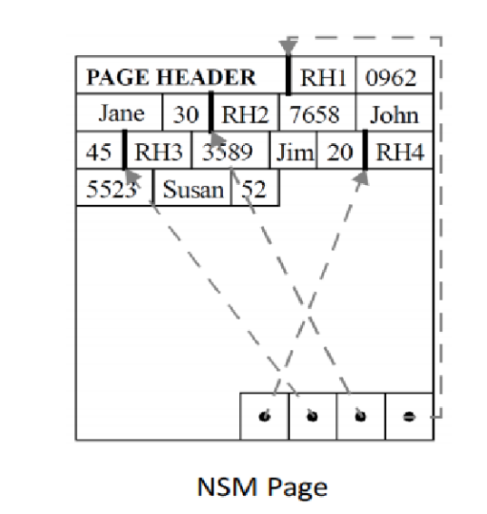NSM 能更快速的取出一行记录,这是因为一行的数据相邻保存在同一页