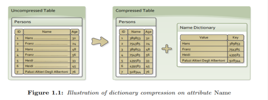 字典编码就是生成一个“原始值替代值”的对照字典。为了起到压缩的作用, 替代值的长度小于原始值的长度。存储的时候, 只存储替代值而不是原始值, 从而压缩了存储空间