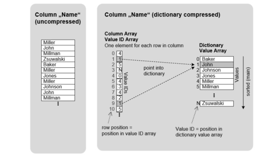 字典编码算法把唯一值编入字典,每一个唯一值都匹配一个序号,而序号用于索引字典,通过存储序号来压缩数据。如果数据表中存在大量的重复/频繁值,那么使用字典编码压缩率高,效果非常好。