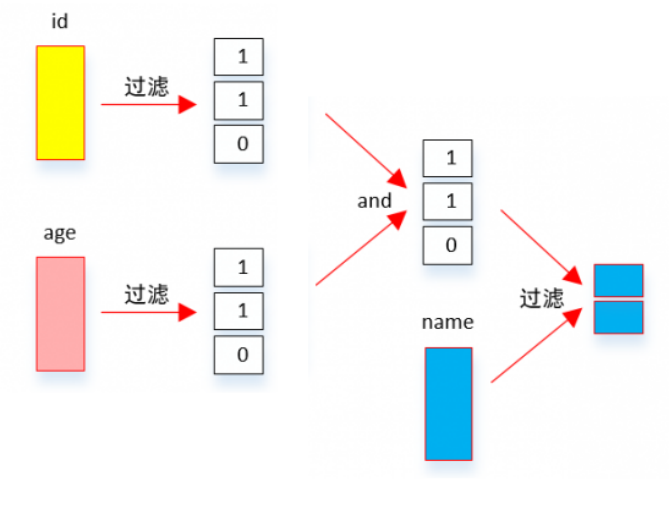 直接在每一个Column 数据上分别应用过滤条件,从而得到两个满足过滤条件的 bitmap