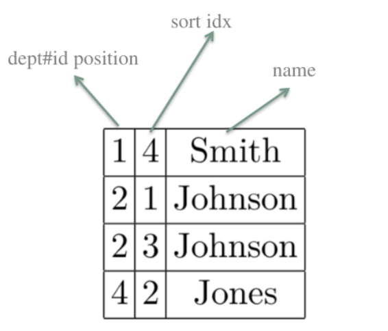 由于上图右侧输出无序,如果回表查必然造成大量随机 IO ,为了解决这个问题,Jive Join[参考文献 Fast Joins Using Join Indices]采用了对其进行排序之后再查询,即将随机 IO 转化为顺序 IO 的方法进行优化。