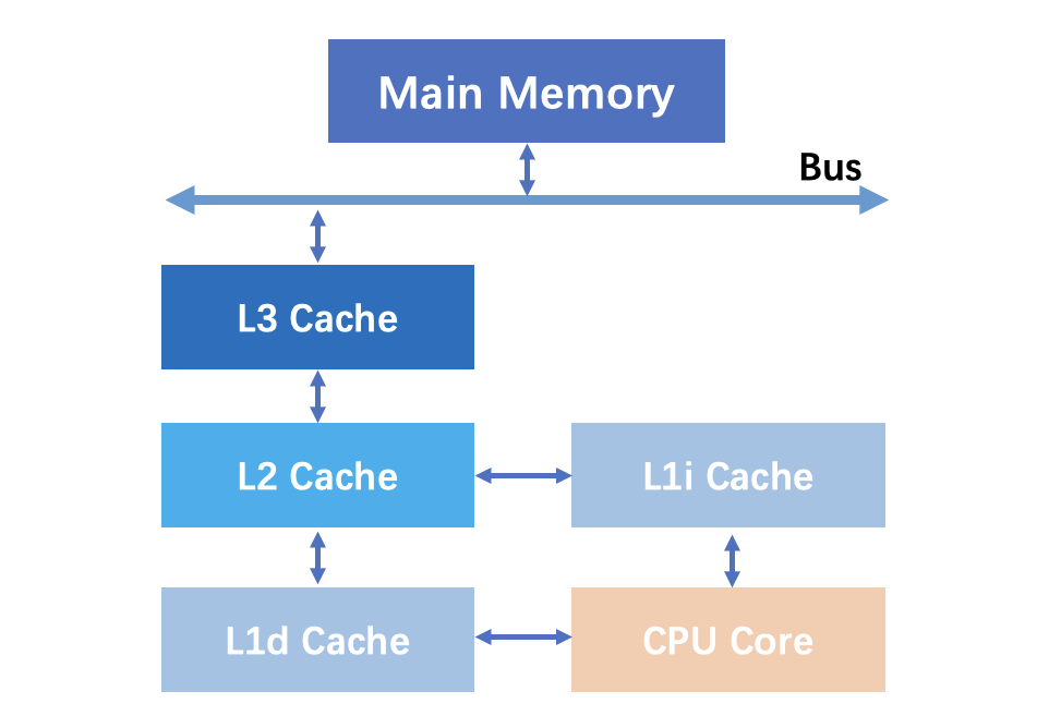 数据从 RAM 加载 L3 缓存,然后是 L2 ,最后是 L1 。当处理器正在寻找执行操作的数据时,它首先尝试在 L1 高速缓存中找到它。如果 CPU 能够找到它,则该条件称为缓存命中。然后它继续在 L2 中找到它,然后在 L3 中找到它。如果找不到数据,它会尝试从主存储器访问它。这称为缓存未命中。