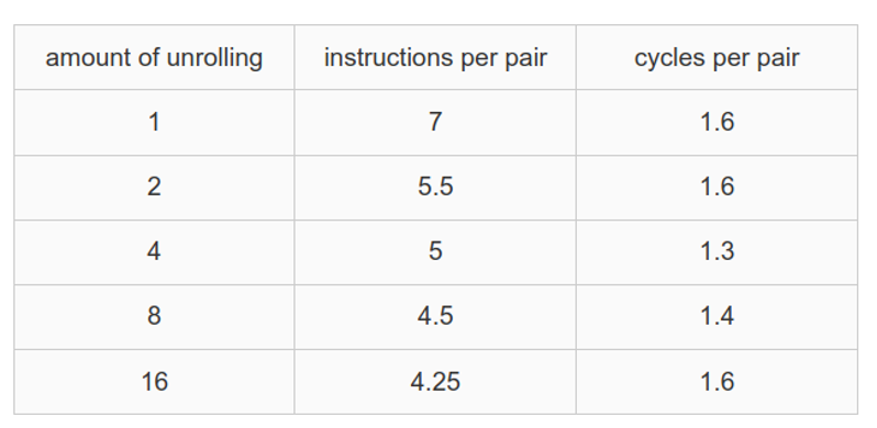 const uintptr_t pval = reinterpret_cast<uintptr_t>(p);const uint8_t* x = reinterpret_cast<const uint8_t*>(((pval + 3) >> 2) << 2);if (x <= e) {// Process bytes until finished or p is 4-byte alignedwhile (p != x) {STEP1;}// Process bytes 16 at a timewhile ((e-p) >= 16) {STEP4; STEP4; STEP4; STEP4;}// Process bytes 4 at a timewhile ((e-p) >= 4) {STEP4;}// Process the last few byteswhile (p != e) {STEP1;}