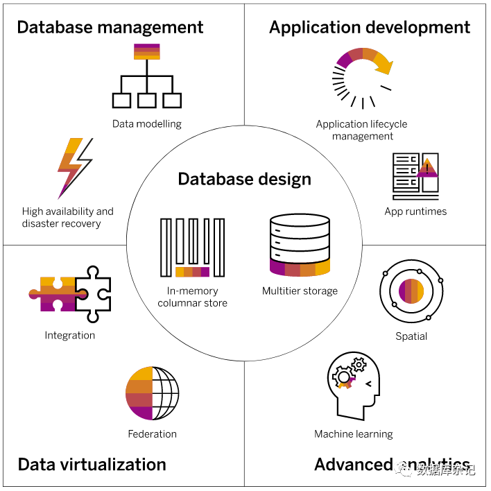 全面:包括数据库服务、高级分析处理、应用开发和数据集成